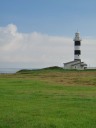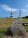入道崎:灯台のたもとが大きな駐車場で売店、食堂など観光地を形成しています。灯台をアクセントにした写真が撮れます