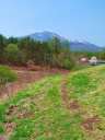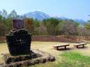 浅間牧場:駐車場からなだらかな芝生の丘を5分ほど登って振り返ると浅間山が正面に見えます。「丘を越えて」の歌碑もあります。