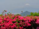 かつらぎ山ロープウェイを下りると一帯にツツジが咲き乱れています お茶屋の横の展望台から富士とツツジの写真が撮れますが、この時期、快晴はなかなか望めません 昼に向かってどんどん雲が出てくるのでロープウェイ開通同時に乗ってください